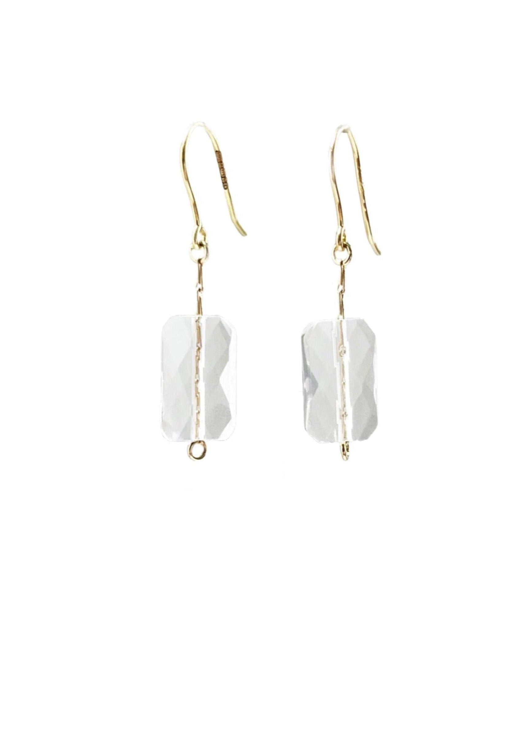 Faceted Rock Crystal rectangles, clear in colour and threaded onto 9ct yellow gold chain